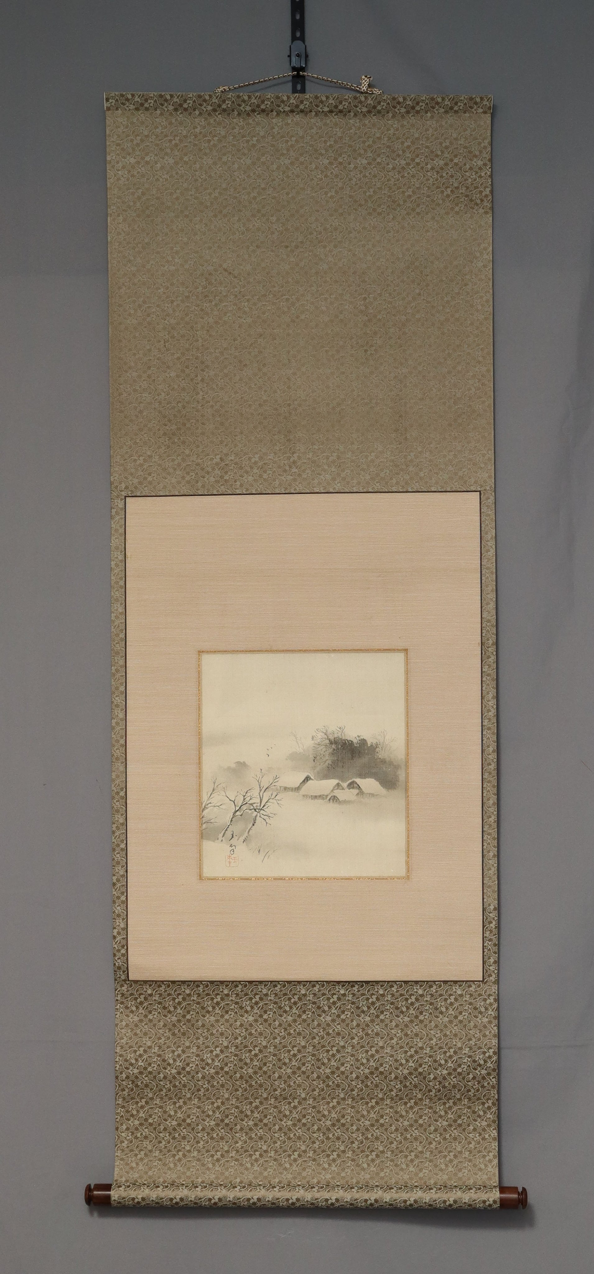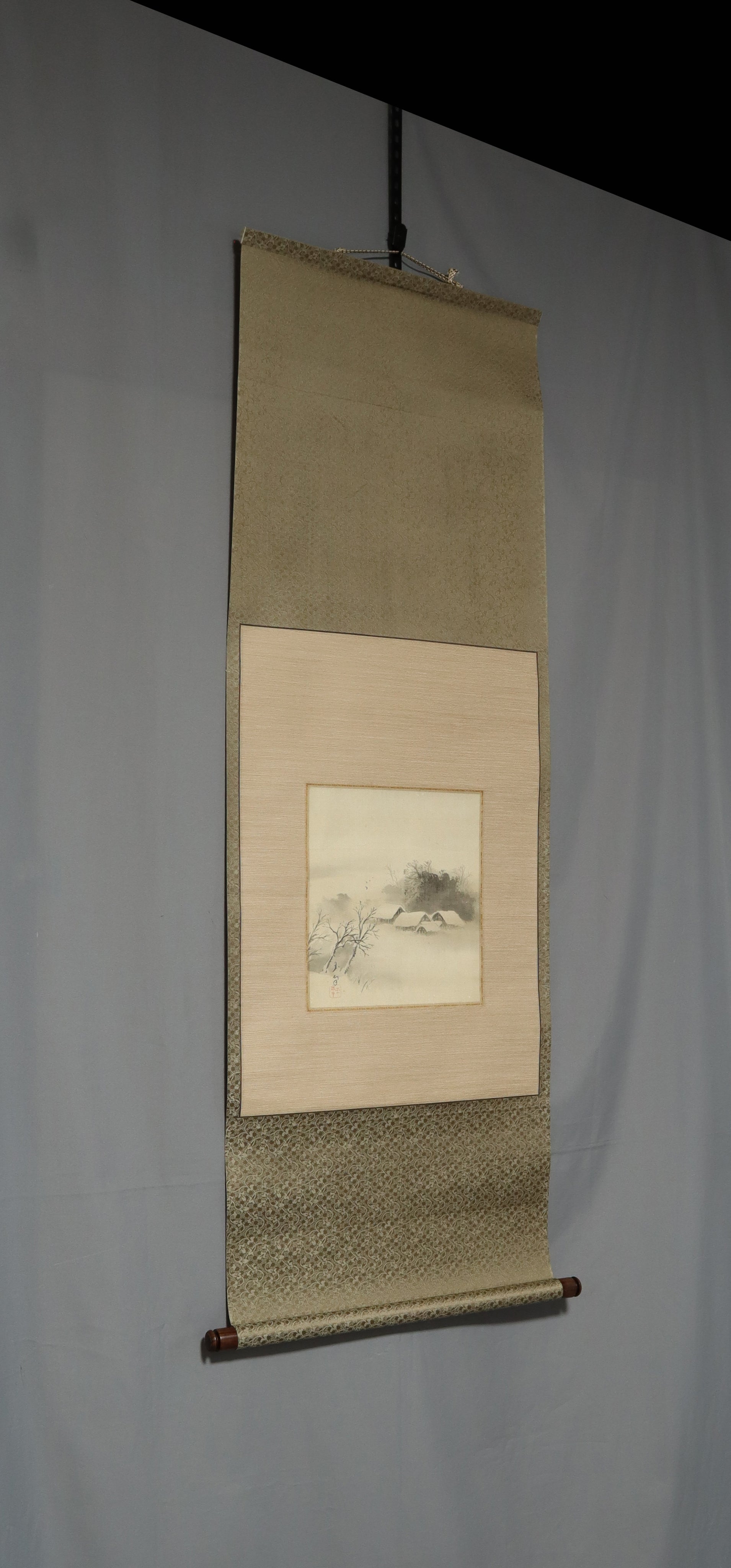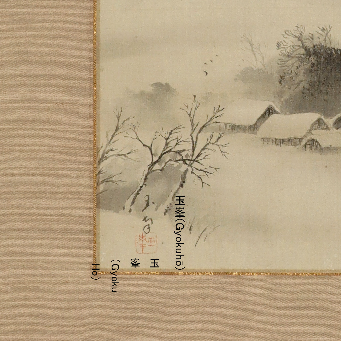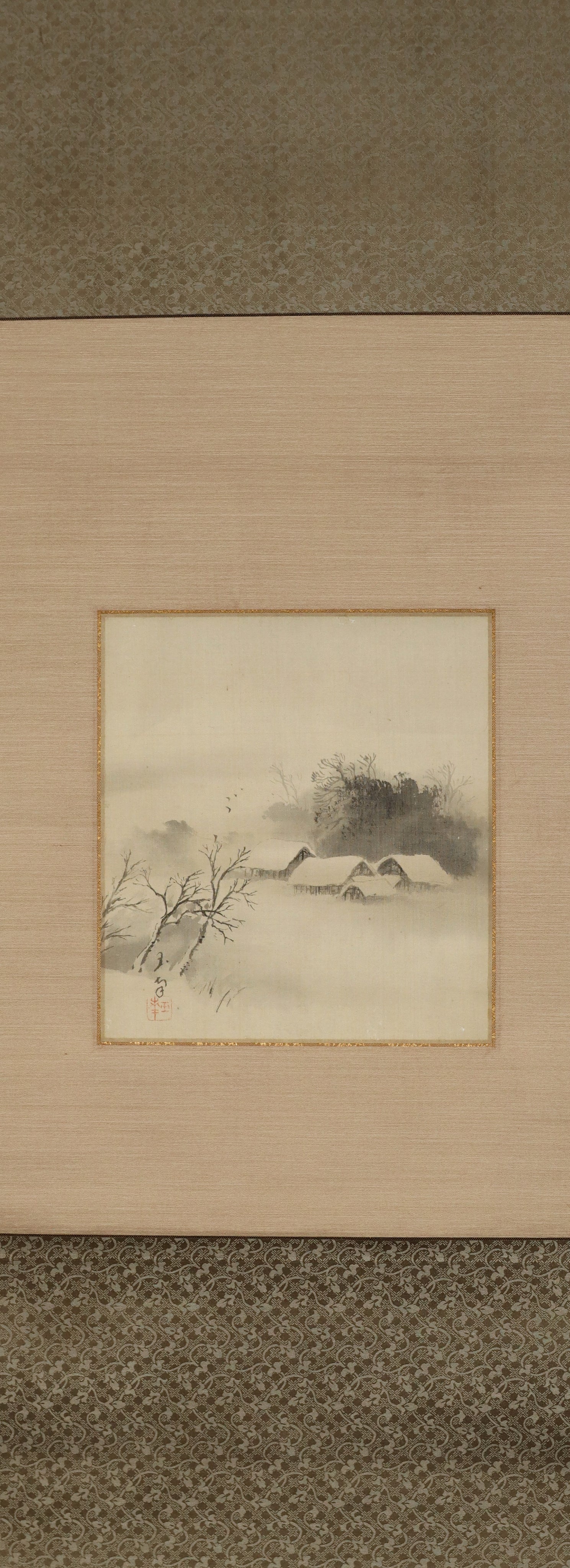 Gyokuhō (?-?)玉峯 , Snowy Landscape with Folk Houses , Japanese hanging scroll