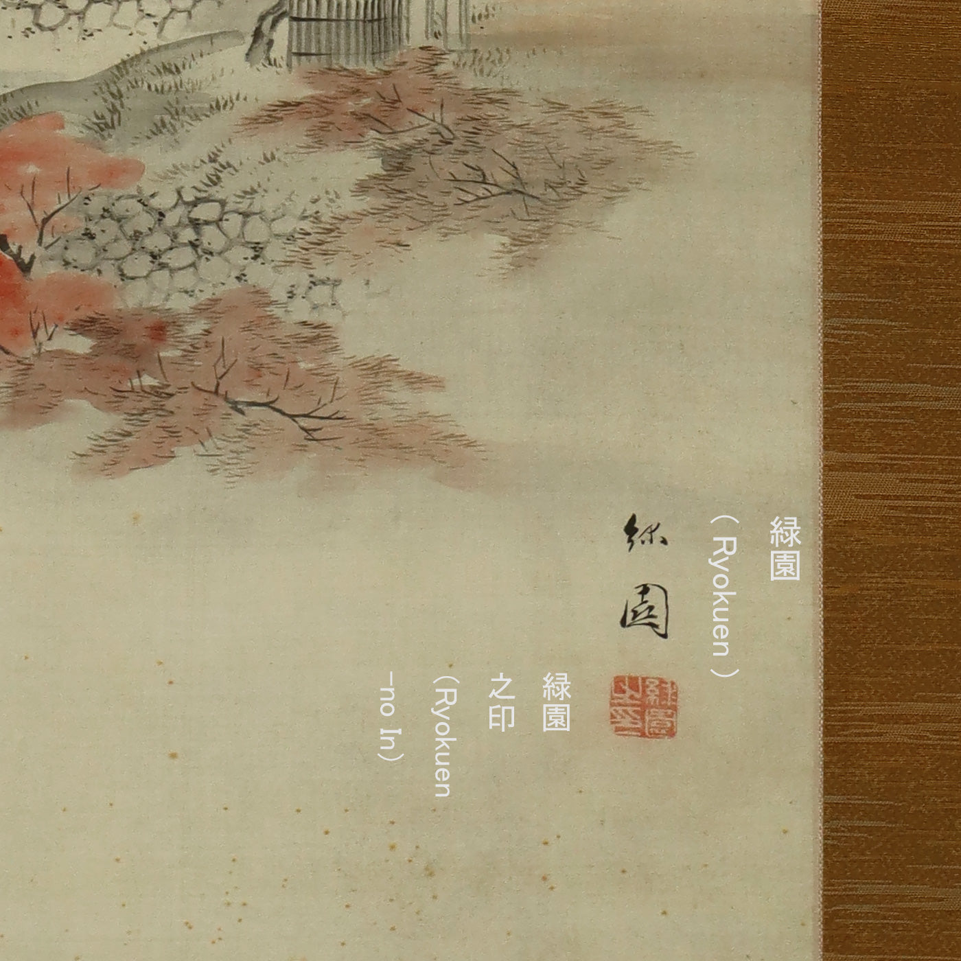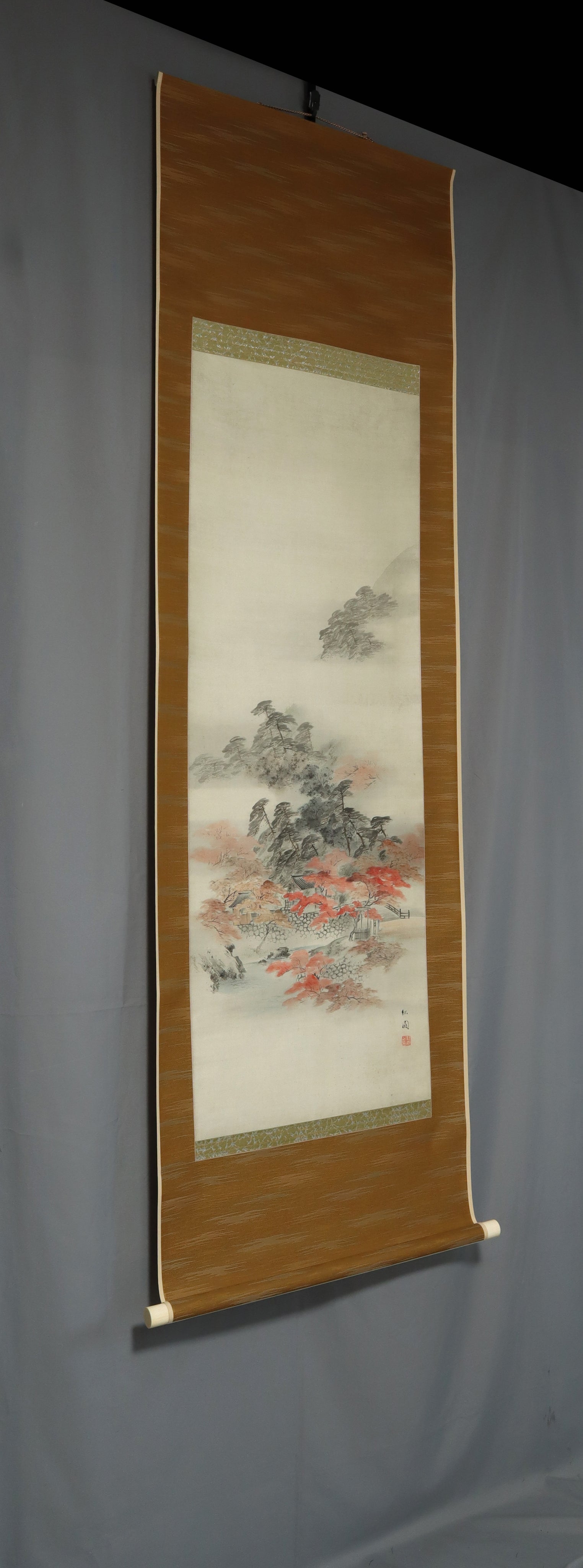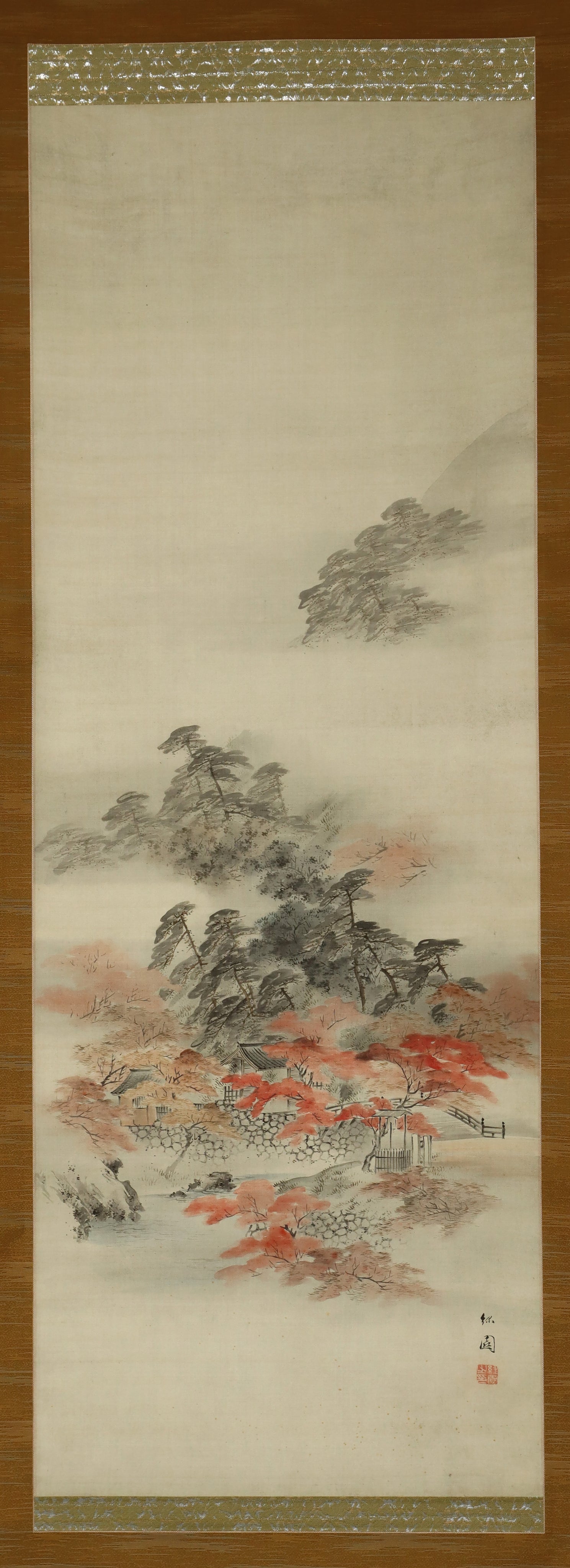 Ryoken(?-?),緑園 ,Pine and Autumn Foliage Landscape , Japanese hanging scroll