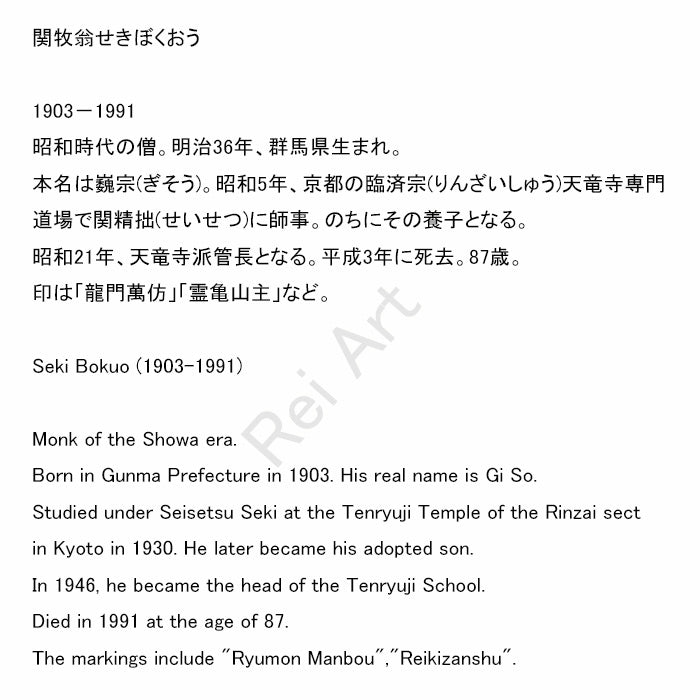 Studied under Seisetsu Seki at the Tenryuji Temple of the Rinzai sect