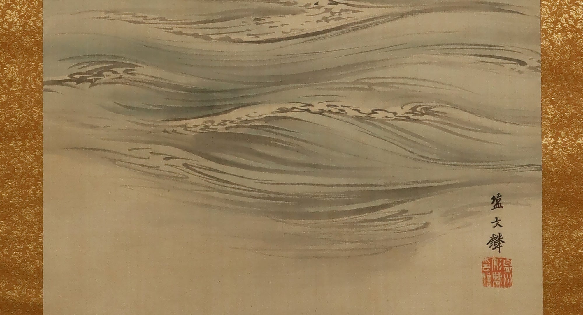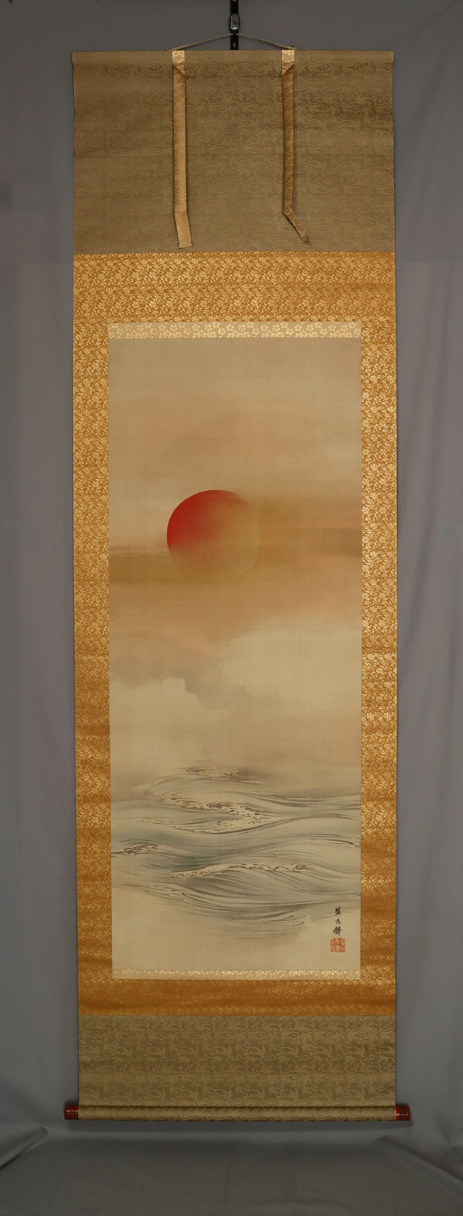 "Rising Sun over Waves" – As a subject for hanging scrolls, this is arguably one of the most frequently depicted themes.