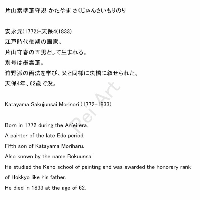He studied the Kano school of painting and was awarded the honorary rank of Hokkyō like his father.
